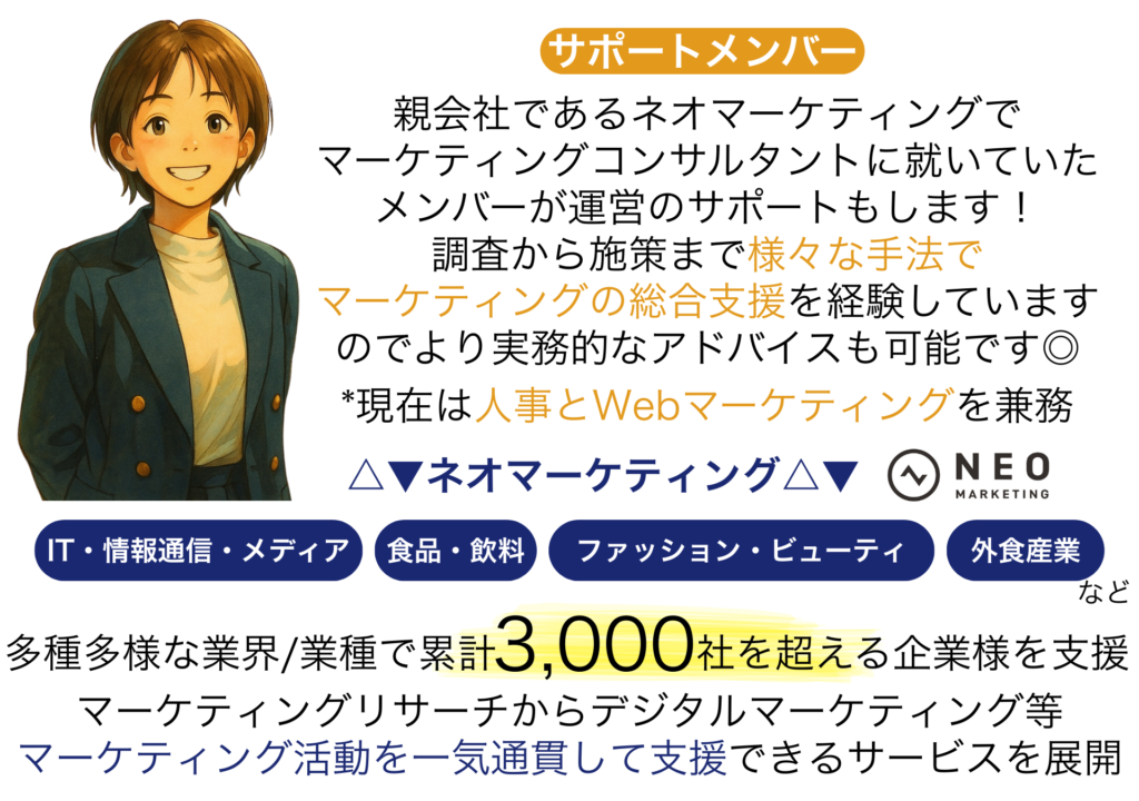 学生時代から、マーケティングに関するお仕事を学んだり、実践的な経験を少し積んでみたい人におすすめです。活動を通じて、ワクワク体験を増やしていきます。