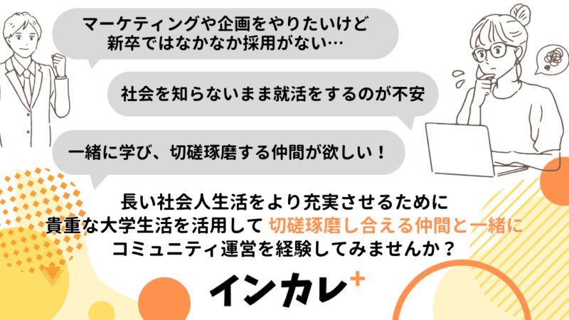 学生時代から、マーケティングに関するお仕事を学んだり、実践的な経験を少し積んでみたい人におすすめです。活動を通じて、ワクワク体験を増やしていきます。